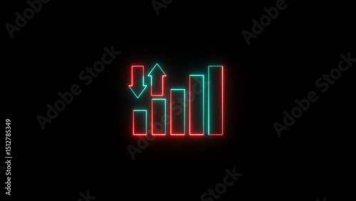 Neon light financial growth and decline illustration on black background representing market fluctuations and data analysis visualization