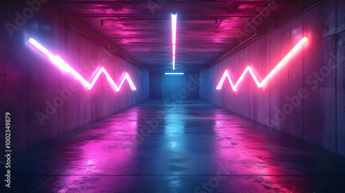 Neon Lights in a Long Concrete Hallway 3D Illustration