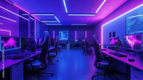 Neon Lit Gaming Room with Purple and Blue Lights