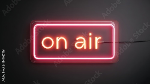 Neon "on air" sign glowing in dark studio setting