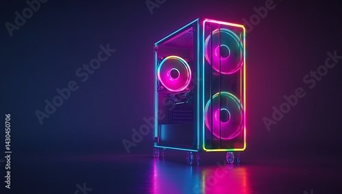 Neon PC Case. Illuminated, modern computer chassis
