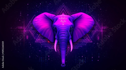 Neon pink elephant head, geometric background.