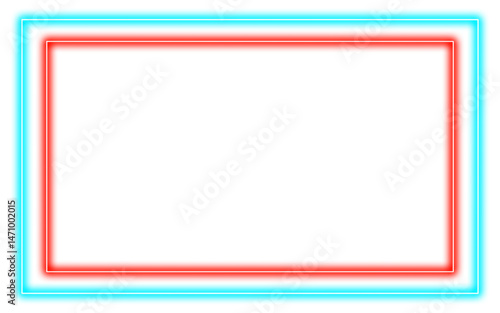 Neon Red and Cyan Double Frame PNG with Transparent Background