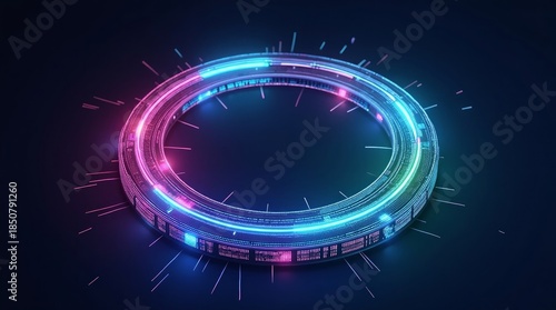 Neon ring with digital patterns and light rays technology