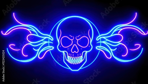 neon skull with crossbones