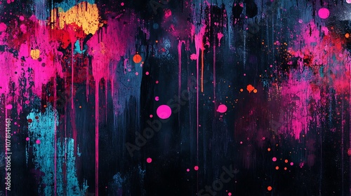 Neon splashes on dark grunge background
