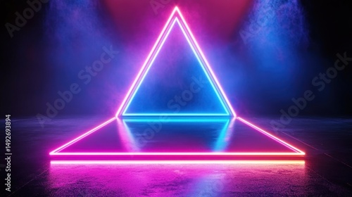 Neon Triangle Glowing with Vibrant Pink and Blue Lights on Dark Surface