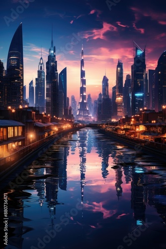 Neon Vision Futuristic Dubai at night vibrant reflexes and enlightened moderni, generative IA