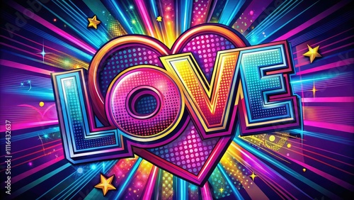 Neon-colored pop art love background with energetic vector designs, delivering a bold visual statement that captivates and energizes with modern artistic expression.