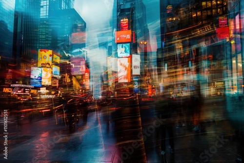 Neon-Lit Urban Landscape in Times Square, New York City
