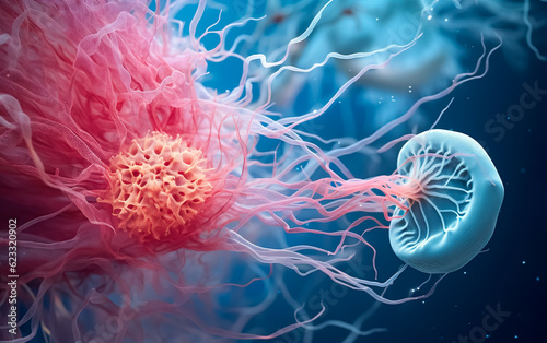 Nervous system or tumor cell concepts.microbiology sea anemone or marine life.bio system and science research.generative ai technology