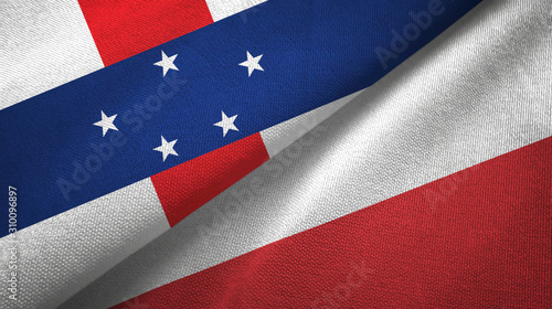 Netherlands Antilles and Poland two flags textile cloth, fabric texture