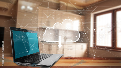 Network cloud and laptop on the table