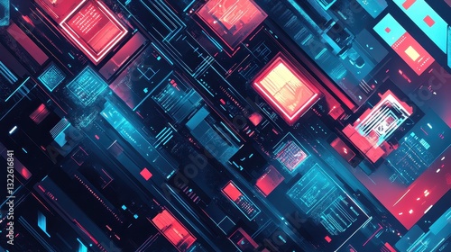 Network flat design top view theme information technology water color vivid.