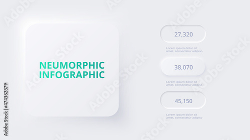 Neumorphic flowchart infographic. Creative concept for infographic with 3 steps, options, parts or processes.