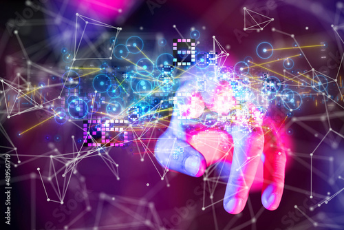 Neural network 3D illustration. Big data and cybersecurity