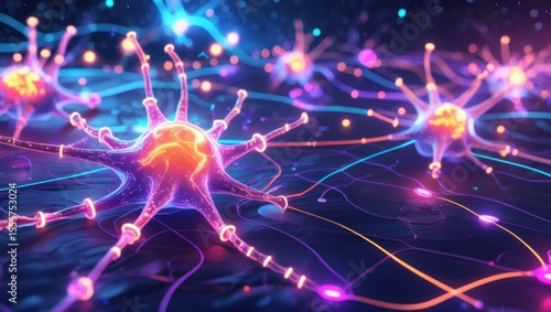 Neural Network Activity with Glowing Brain Connections, High-Resolution Concept Art