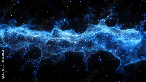Neural network AI visualization with cybernetic blue connections, deep-learning algorithms, and holographic artificial intelligence interface