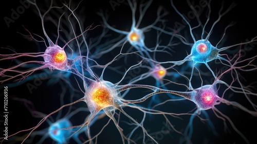 Neuronal network with neurons and synapses in brain. Neurological diseases like epilepsy and schizophrenia. Neuroimaging for diagnostic, neuromodulation and therapeutic aid neurofeedback brain mapping