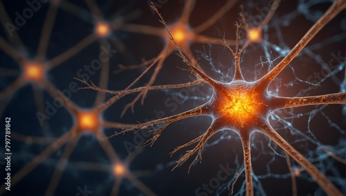 Neurons transmitting brain activity firing biology electrical nerve signal neurotransmitter chemical receptor cell dendrite neural medical advancement ai_generated