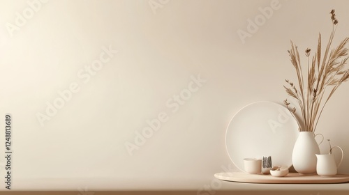 Neutral Minimalist Home Decor with Dried Flowers. Modern Aesthetic. Simple and Elegant Style.