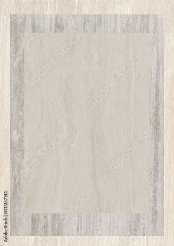 Neutral-toned rectangular rug with subtle border pattern on a light wooden floor