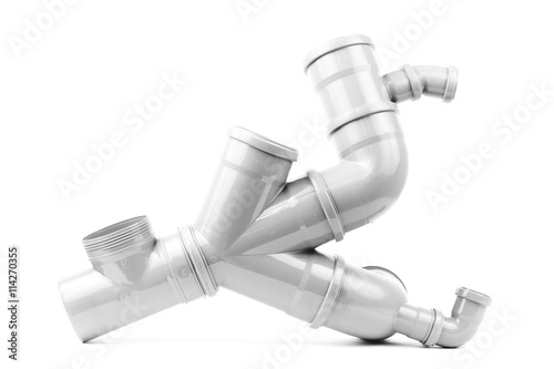 New gray drain pipe isolated on a white background