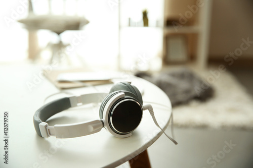 New headphones on the table in the room