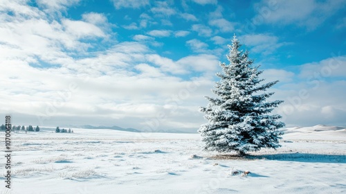 New Mexico Christmas Landscape With Snow-Covered Tree and Blue Sky Generative AI