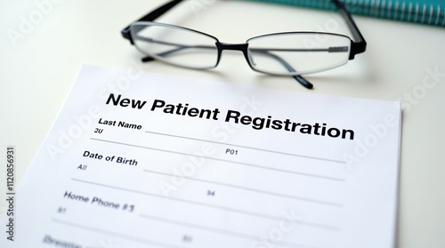New Patient Registration Form with Reading Glasses on Desk