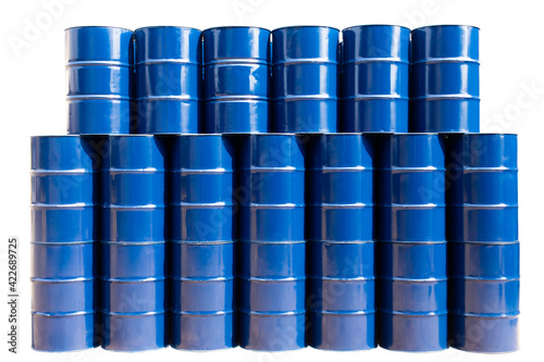 New Steel Barrel, blue oil tank stack many drum in Toxic waste