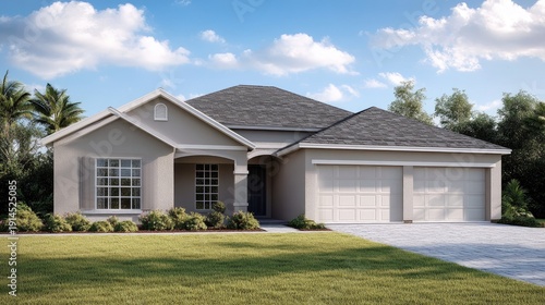 New Suburban Home Design: Modern Three-Car Garage House