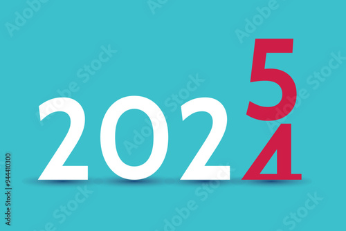 New year 2025 . year changing 2024 number to 5 on blue background. Calendar style white and red
