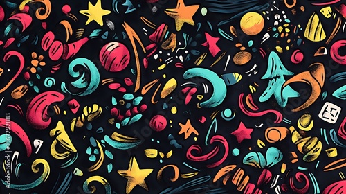 New Year artistic doodle patterns with celebratory elements