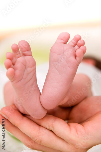Newborn Baby`s feet in Daddy`s hand