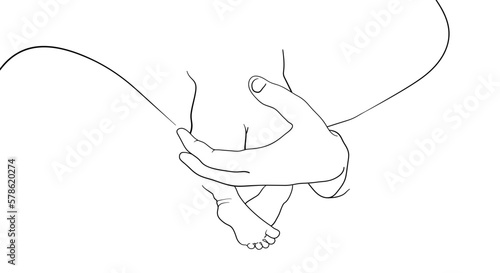 Newborn line art drawing on white background. Mother's day, newborn baby sleeping on dady hand