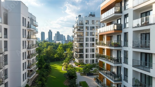 Newly developed apartment complex in urban setting, representing rental market growth