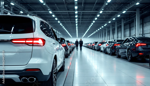 Newly manufactured SUVs parked stylishly in a sleek showroom