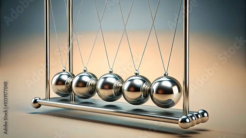 Newton's Cradle exemplifies business dynamics, illustrating cash flow and operability through minimalist 3D photography, capturing the essence of cause and effect relationships.