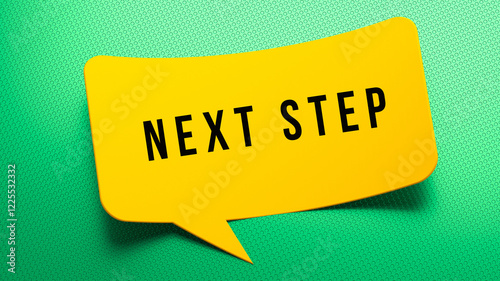 Next step text message on the 3D curve speech bubble. Dotted and green background