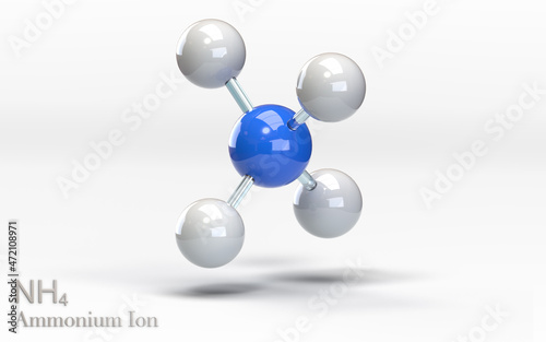 NH4 Ammonium ion. Molecule with hydrogen, hydrogen and nitrogen atoms. 3d rendering