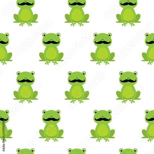 Nice happy cartoon seamless vector pattern with frogs with mustache
