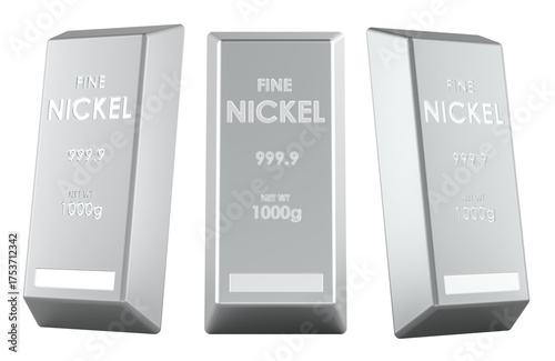 Nickel bullion bars 1000g, fine nickel 999.9. 3D rendering