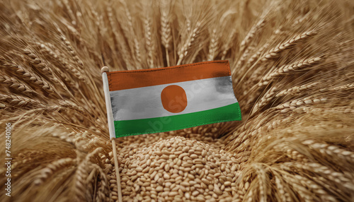 Niger flag on barley grain. Origin of barley, agribusiness of growing barley