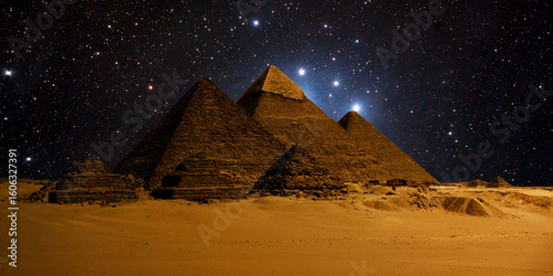 night scene of the castle pyramid in the desert