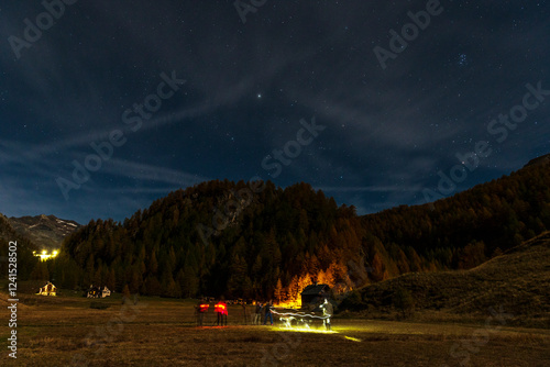 night shots of an autumnal mountain landscape inside the Alpe Devero, Val D'Ossola, Verbania, Italia