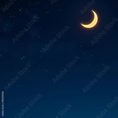 Night sky, crescent moon, stars, Ramadan, Eid, Islamic greeting card, Fitr, moon