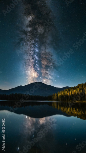 Night sky reflecting on a still lake.
