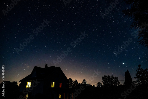 Night sky with stars in countryside