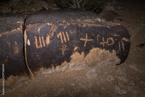 Night view of a drawing carved in stone by a primitive man in the desert in southern Israel near the Avdat fortress